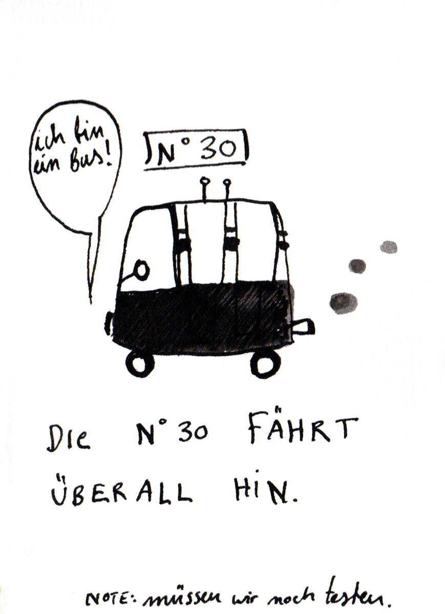 “Ein Stück Stadt entziffern. Ihre Verkehrswege: warum fahren die die Autobusse von diesem Ort zu jenem Ort? Wer wählt die Strecken aus und auf Grund welcher Voraussetzungen?”